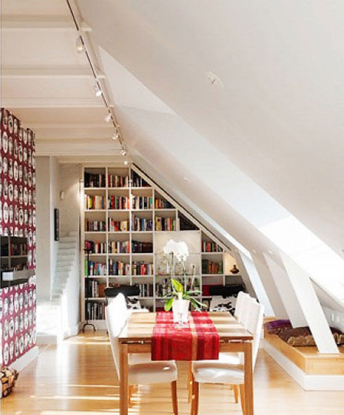 雨林沐风的话: 欧洲的许多家庭如果拥有自己的一栋房屋,一般都有阁楼,通常空间较小,有斜面天窗,别有一番风味。在中国,阁楼也越来越成为一种时尚,有些复式设计都体现了这一点。